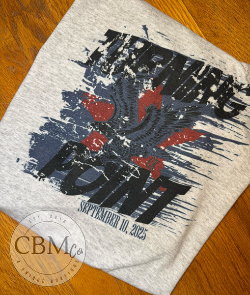 Sublimation printed designs on a unisex hanes tee. 100% of profits going to the Turning Point foundation.
